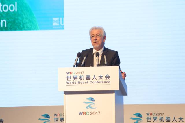 斯坦福大学教授,国际机器人研究基金会主席Oussama Khatib在其题为“深海探索的人机协作时代”,介绍了机器人在深海探索领域的最新应用案例,多次强调了“人机互动”的重要性,并从深海探索机器人出发,展望了机器人未来的广泛应用前景。他表示,未来的重点研究拓展方向,将会是在让机器人在非结构的环境做出及时有效反应并保持正常运作。他提到,“一个机器人反复地做同一个工作,这都是可以事先编程的,但是现在我们所做的任务是让机器人在有挑战的环境当中,非结构的环境当中也可以完全适应并工作,这对计算来说是一种挑战,而且要实现这种协作产生安全最好的轨迹是很难的。我们在思考所有的这些方面的时候就需要思考怎样把技术提高,怎样才能让机器人达到更高的水平,而不只是在最低的水平活动。”