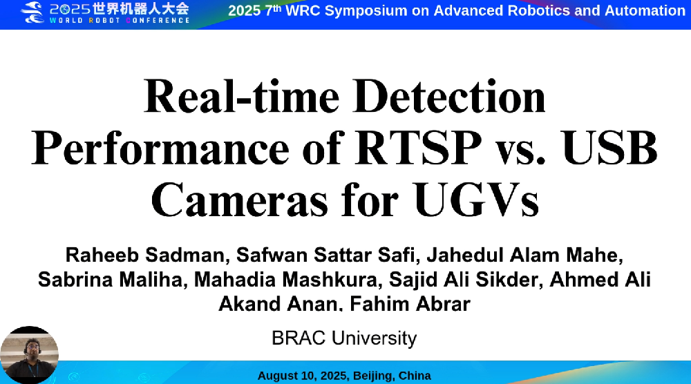 • Advanced Robotics and Automation Real-time DetectionPerformance of RTSP vs. USBCameras for UGVs